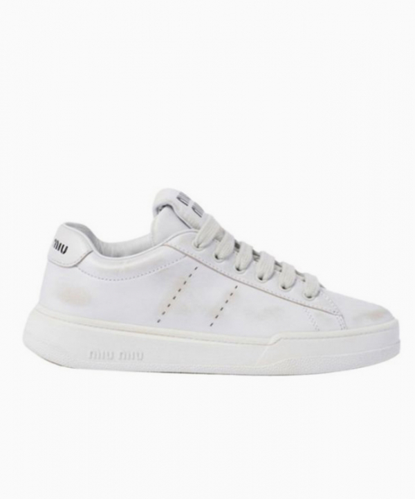 미우미우 블리치드 레더 스니커즈 화이트 5E916D-3G63-F0009