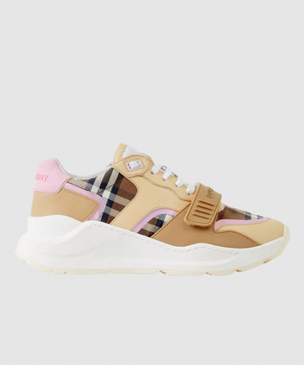 버버리 체크 코튼 레더 스니커즈 버치 브라운 핑크 8049213