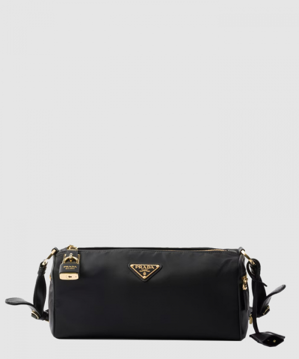 자물쇠가 있는 미디엄 리나일론 및 가죽 숄더백 1BC233 【매장-340만원대】