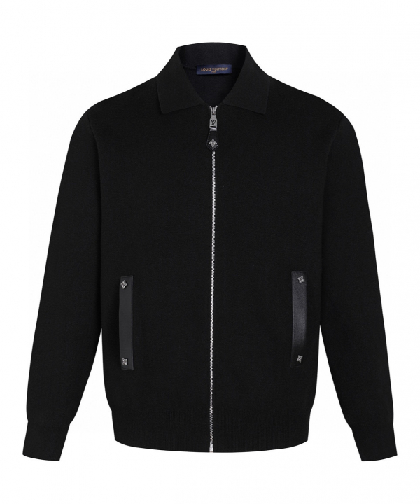 루이비통 포켓 가죽 로고 지퍼 가디건