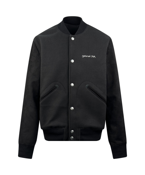 디올 스웨이드 배색 자수 야구 재킷
