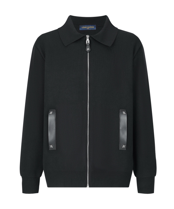 루이비통 포켓 가죽 라벨 지퍼 가디건