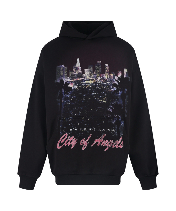 발렌시아가 나이트 뷰 프린트 후드티