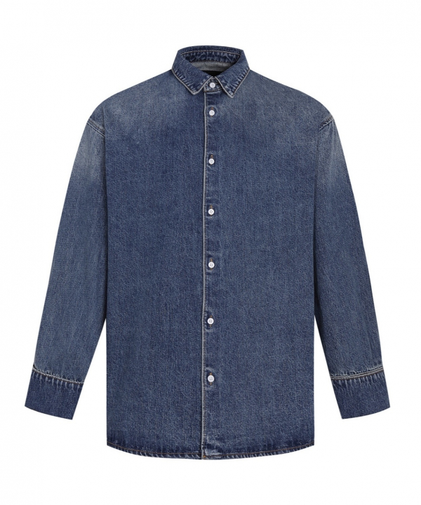 프라다 카라 있는 루즈핏 데님 긴팔 셔츠