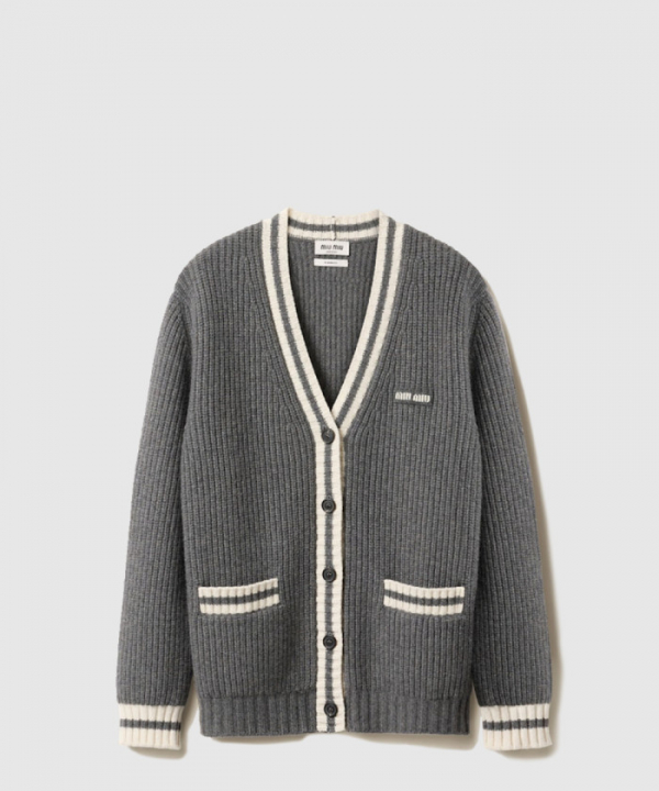 미우미우 립 조직 니트 울 및 캐시미어 가디건 MMF929