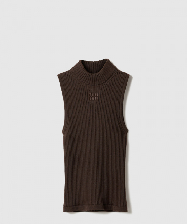 미우미우 립 조직 니트 울 터틀넥 탑 MMV253