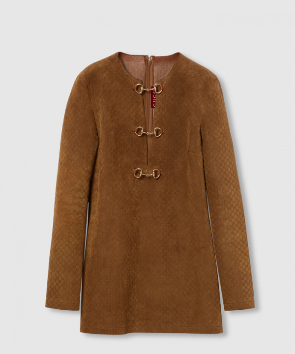 구찌 홀스빗 디테일의 GG 스웨이드 드레스 817757