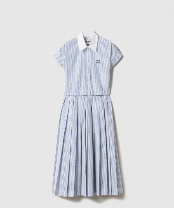 미우미우 플리츠 스트라이프 포플린 미디 드레스 MF5989