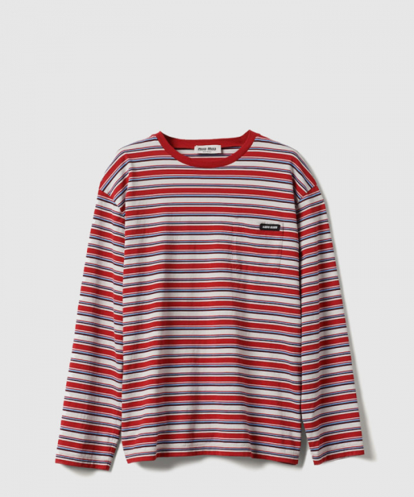 미우미우 슬리브 코튼 저지 티셔츠 MJL014