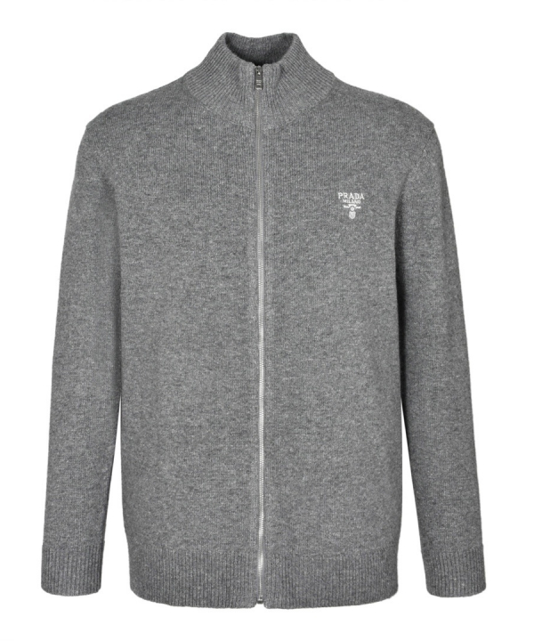프라다 캐시미어 가슴 로고 지퍼 가디건